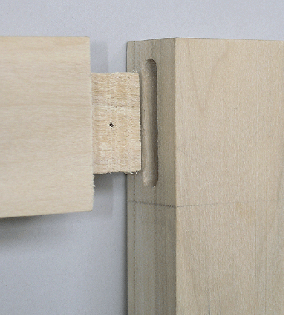 Photo at right shows joinery method for all frames with shelves.Photo below shows lap joint used in mullion joinery.